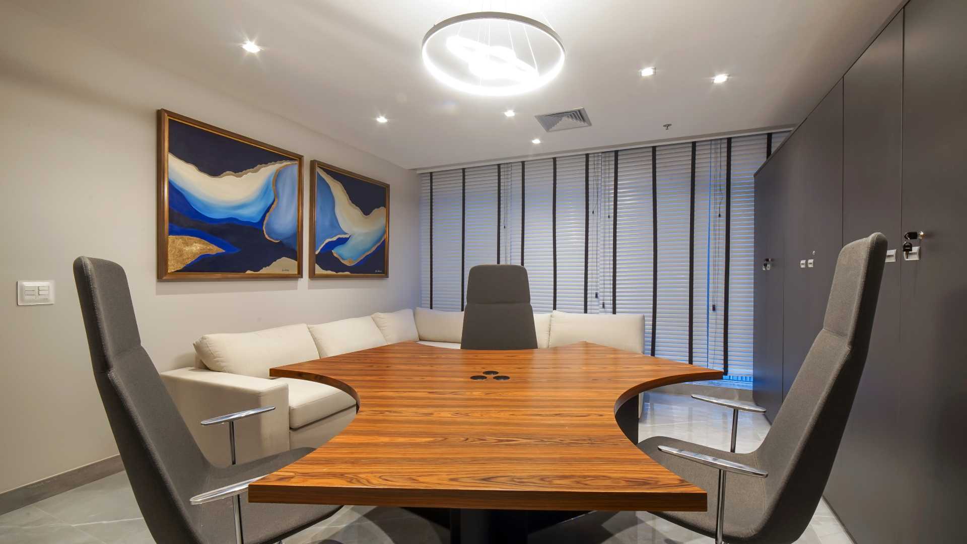 Meeting tables with natural wood veneer tops bring a sober and noble tone to the customer service rooms and have gutters / boxes ideal to support all the necessary technology and cabling. Workstations promote integration and synergy between users.